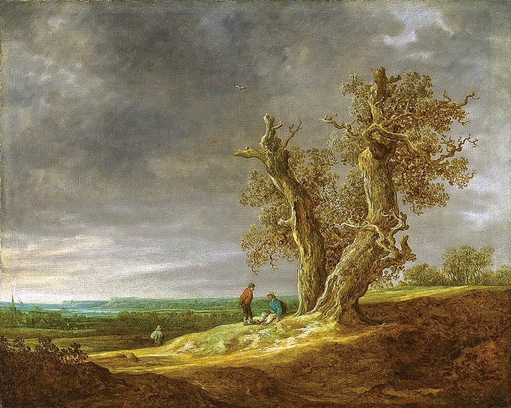 Представьте себе прекрасную картину природы, на которой изображен пейзаж с дубом. Художник Гойен Ян ван своим мастерством передал всю красоту и величие этого древнего дерева. На фоне неба, окрашенного в яркие оттенки рассвета или заката, стоит огромный дуб, его мощные ветви раскинуты во все стороны. Каждая веточка и листочек нарисованы с такой любовью к деталям, что создается ощущение, будто можно почувствовать тепло солнечных лучей, проникающих сквозь листву. Пейзаж с дубом Гойена Яна вана - это не просто картина природы, это настоящее произведение искусства, способное перенести зрителя в мир гармонии и красоты природы.