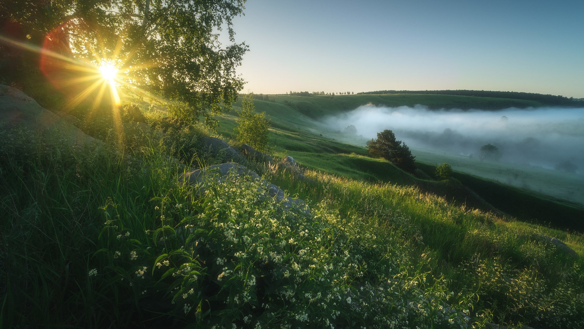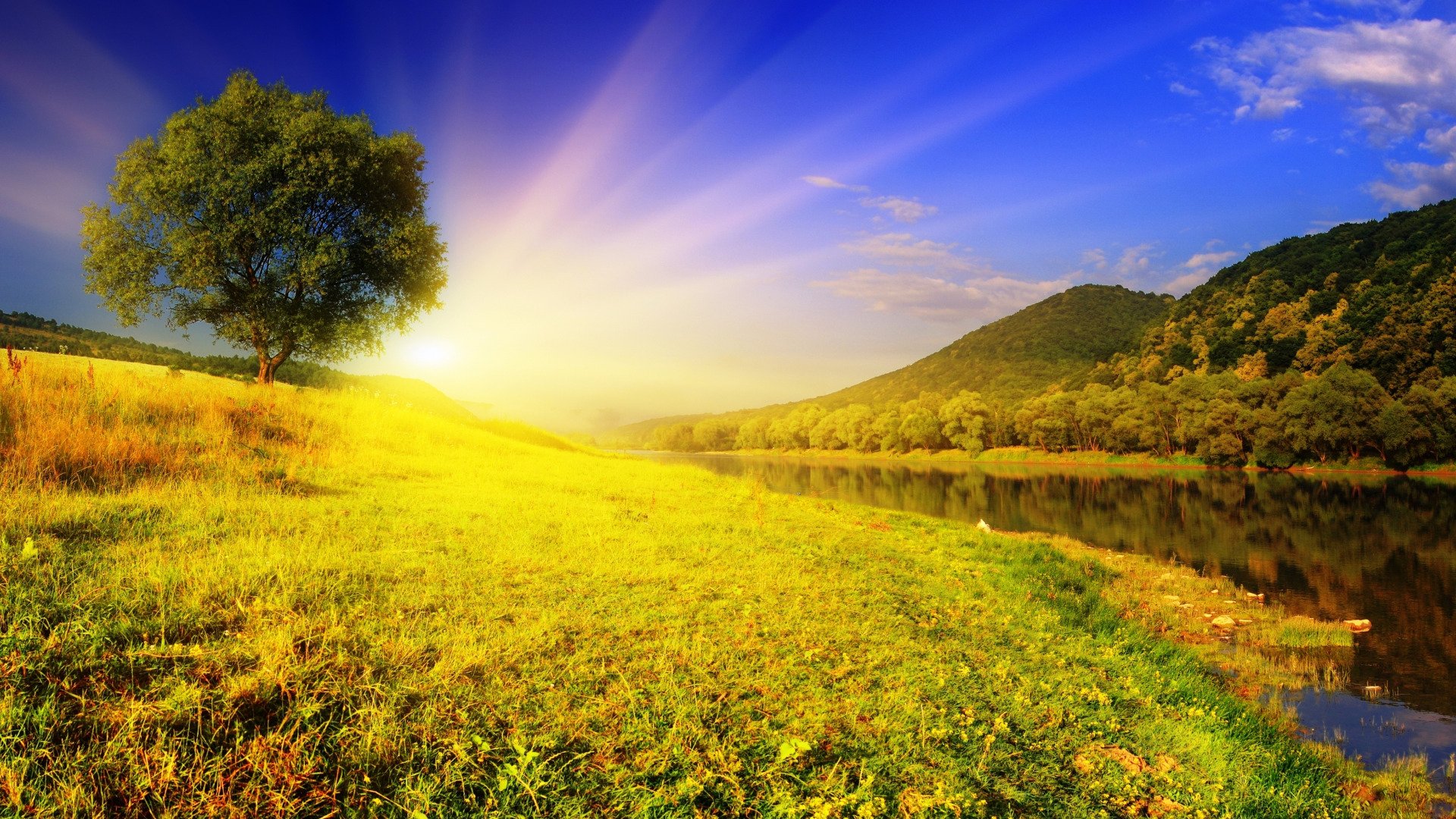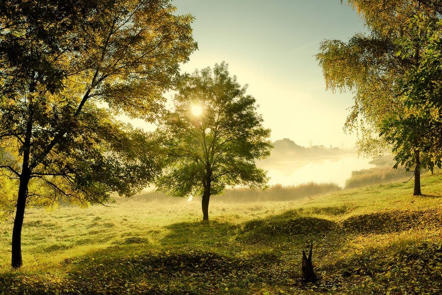 Природа река береза солнце