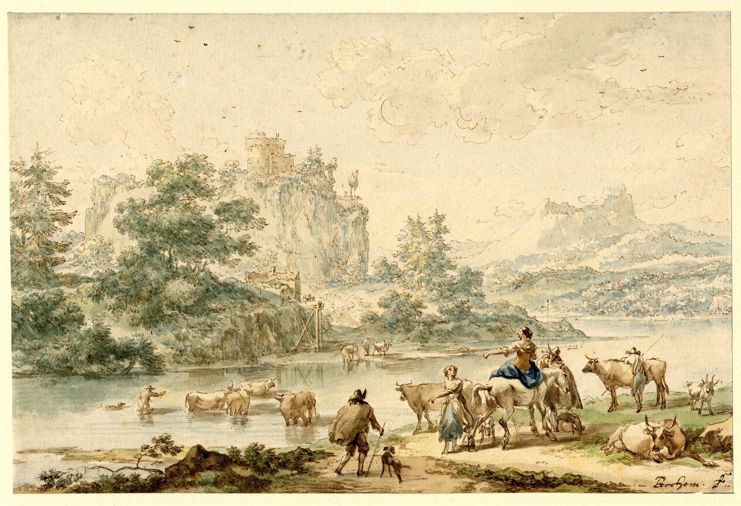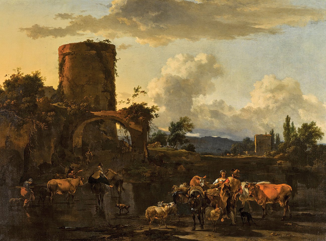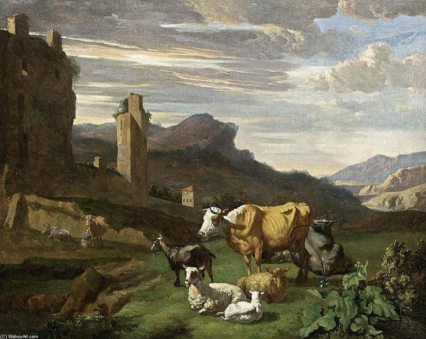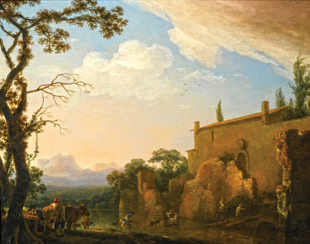 Николас Питерс Берхем. Итальянский пейзаж с мостиком. 1656.