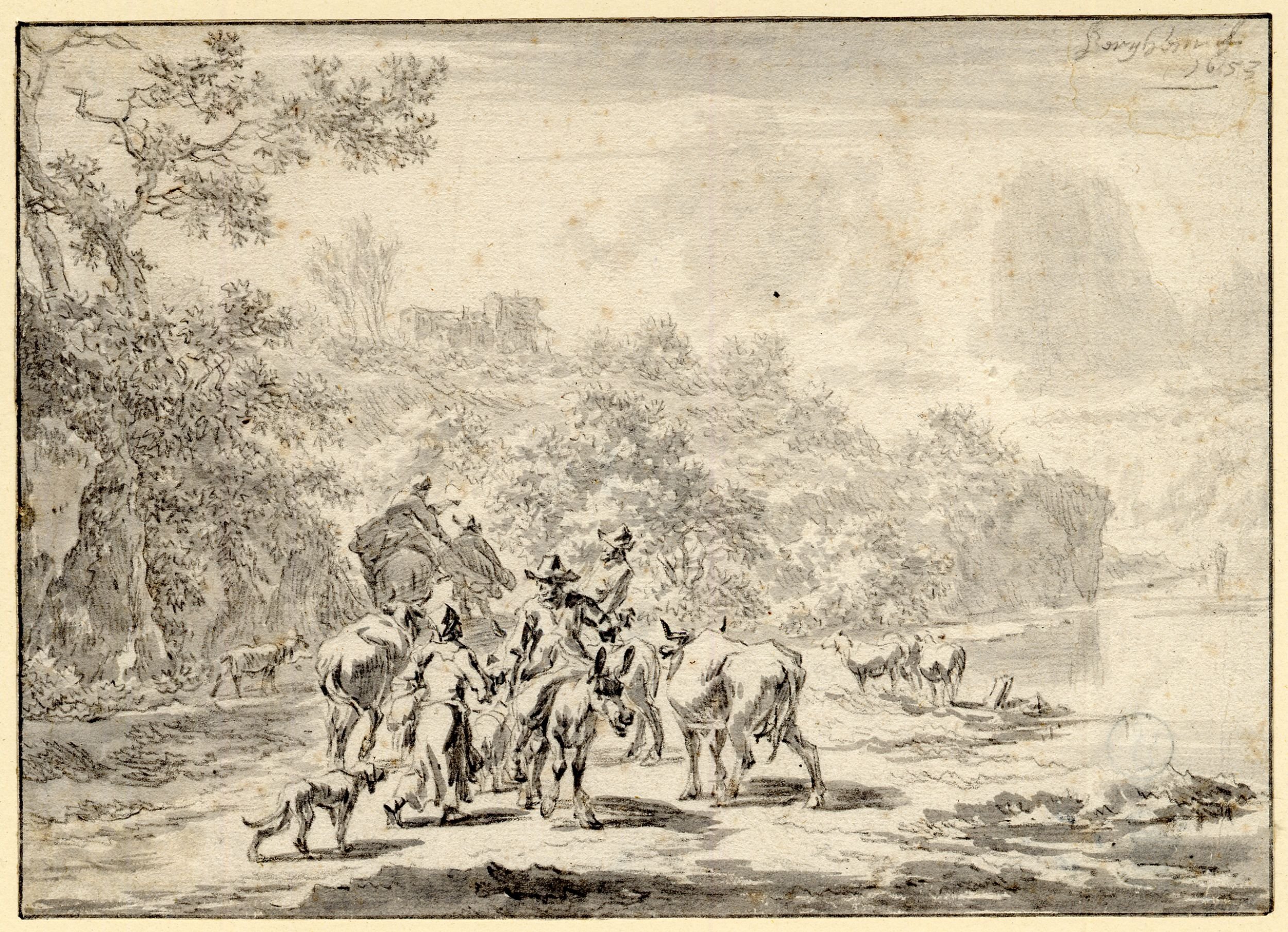 Пасторальный пейзаж гравюра