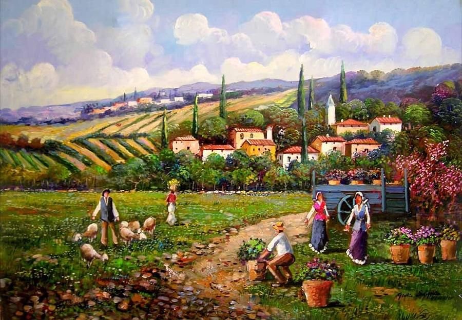 Картина итальянский пейзаж с крестьянином