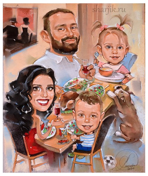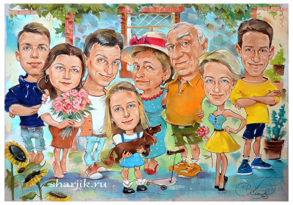 Шарж семейный - это уникальная возможность запечатлеть свою семью в необычной и оригинальной форме. Шарж - это карикатурное изображение, которое передает особенности и характер каждого члена семьи. Будь то родители, дети или даже домашние питомцы, шарж семейный поможет сохранить в памяти яркие моменты и создать неповторимую атмосферу смеха и радости. На иллюстрации можно выделить особые черты лица, увеличить определенные детали одежды или аксессуаров, что добавляет юмора и индивидуальности. Шарж семейный станет прекрасным подарком на любой праздник и будет радовать всю семью долгие годы.