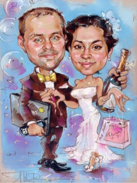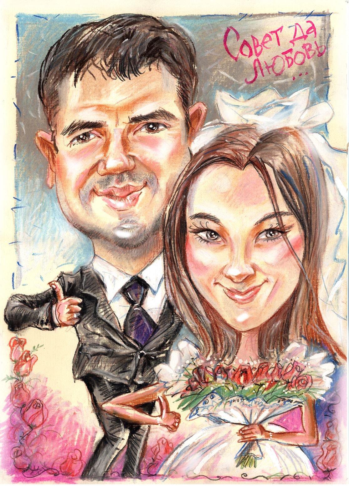 Шарж свадебный - это уникальный и оригинальный подарок, который станет великолепным дополнением к любому свадебному торжеству. Шаржист, владея мастерством и творческим подходом, создаст живописное изображение молодоженов в комическом стиле, передавая их индивидуальность, особенности и радость этого особенного дня. Этот юмористический портрет может стать не только прекрасным элементом декора, но и веселой и запоминающейся аттракцией на празднике, которую гости будут восхищаться и обсуждать. Шарж свадебный - это необычный способ запечатлеть самые счастливые моменты вашей свадьбы и создать яркие воспоминания на всю жизнь.