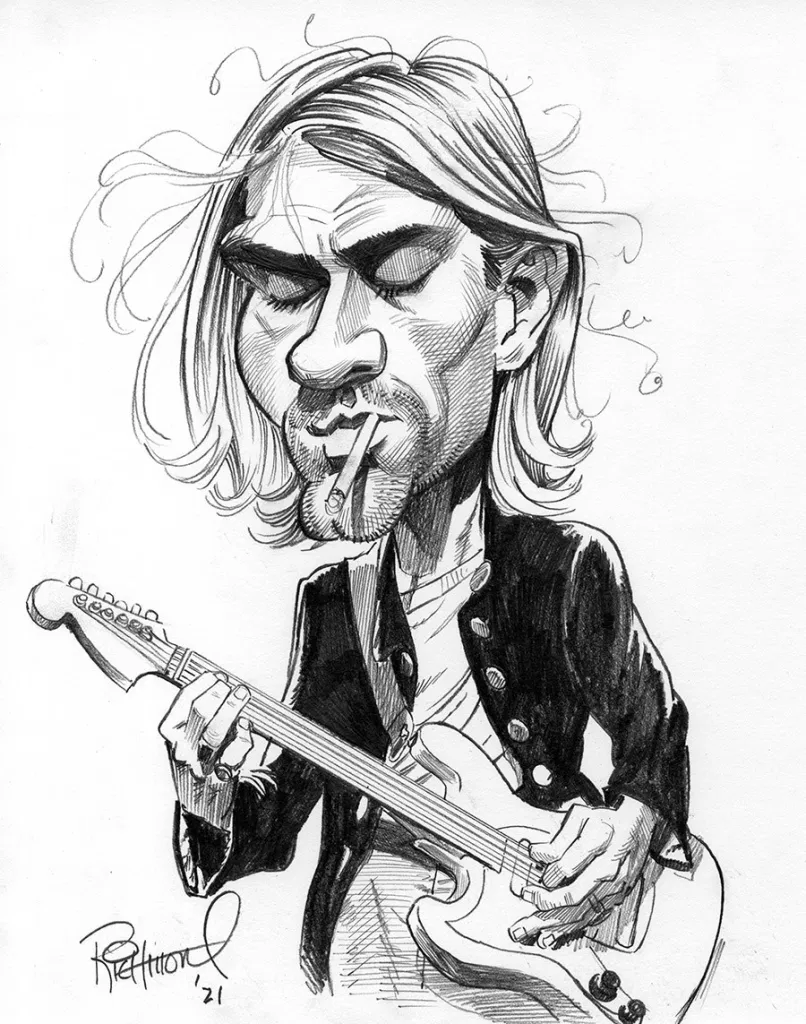 Вашему вниманию предлагается уникальная шарж-карикатура на Курта Кобейна - легендарную фигуру альтернативной рок-музыки. Шедевральная работа отражает характеристические черты и стиль этого талантливого музыканта, захватывая дух и энергию его творчества. Курт Кобейн, основатель и вокалист группы Nirvana, известен своей яркой и неповторимой музыкой, которая вдохновила не одно поколение. Эта шарж-карикатура является прекрасным подарком для поклонников Курта Кобейна и любителей альтернативной музыки, добавляя юмора и оригинальности в их коллекцию.