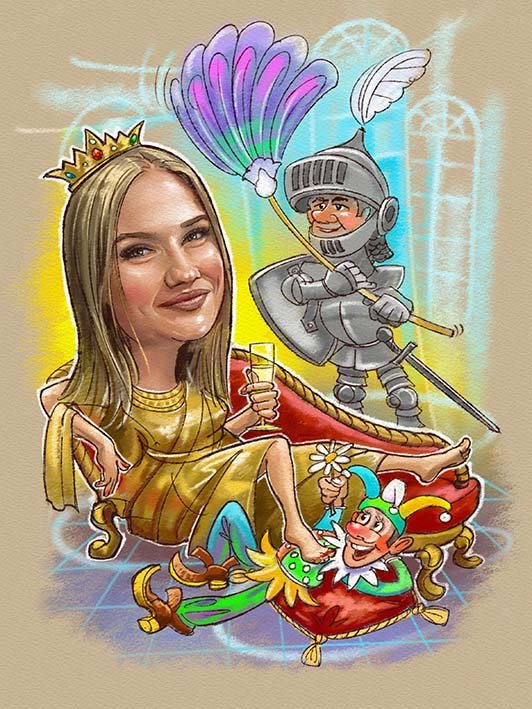 Шарж королева - это жанр искусства, который представляет собой комическое или карикатурное изображение королевы или другой женской монаршей фигуры. В этом жанре художники используют утрирование и эксагерацию черт лица и фигуры, чтобы создать забавные и юмористические портреты. Шаржи королев обычно являются провокационными и критическими по отношению к политике и власти, но они также могут быть просто развлекательными и декоративными произведениями искусства. Этот жанр придает возможность художникам выразить свою творческую интерпретацию и придать новое значение известным историческим личностям. Шаржи королев часто встречаются на публикациях, в карнавалах и выставках и служат не только для развлечения, но и для вызова мыслей и рефлексии о власти и авторитете.