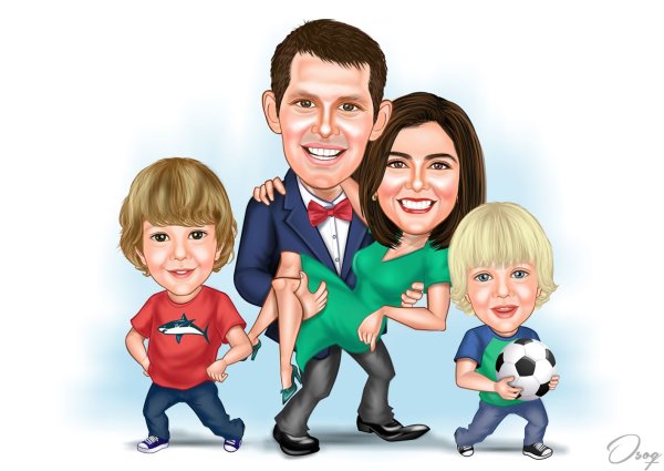 Шарж-рисунок - это уникальное и оригинальное художественное изображение, которое отражает особенности внешности и характера человека с использованием карикатурных элементов. Это забавная и щекотливая форма искусства, которая позволяет уловить самые яркие черты и особенности лица или телосложения человека и выразить их с помощью утонченного юмора и иронии. Шарж-рисунок может быть прекрасным подарком для любого случая, будь то день рождения, свадьба или корпоративное мероприятие. Он не только развеселит и порадует получателя, но и станет незабываемой памятной вещью на долгие годы. Надежные и опытные художники создадут индивидуальный шарж-рисунок, который точно передаст все нюансы и особенности вашей семьи, делая его поистине уникальным и запоминающимся.