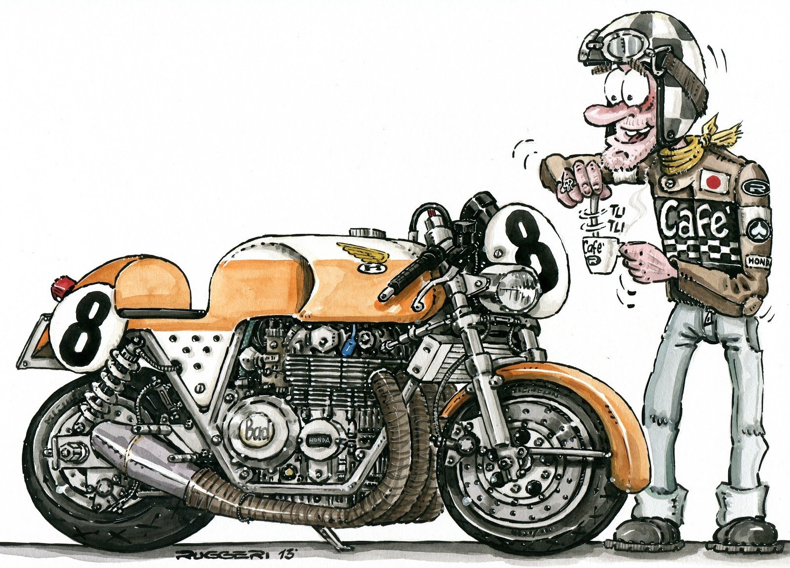 Шарж мотоциклиста - это искусство передать особенности и выразительность этого экстремального хобби через юмористическое изображение. Каждая черта лица, особенности одежды и мотоцикла дополняются преувеличенными формами и выражениями, чтобы создать комический эффект. Шаржированный мотоциклист не только отображает его страсть к скорости и свободе, но и подчеркивает уникальность и индивидуальность каждого человека в мире мотоциклов. Это веселое изображение призвано вызвать улыбку на лице зрителя и подчеркнуть всю радость и адреналин, которые приносит мотоциклизм.