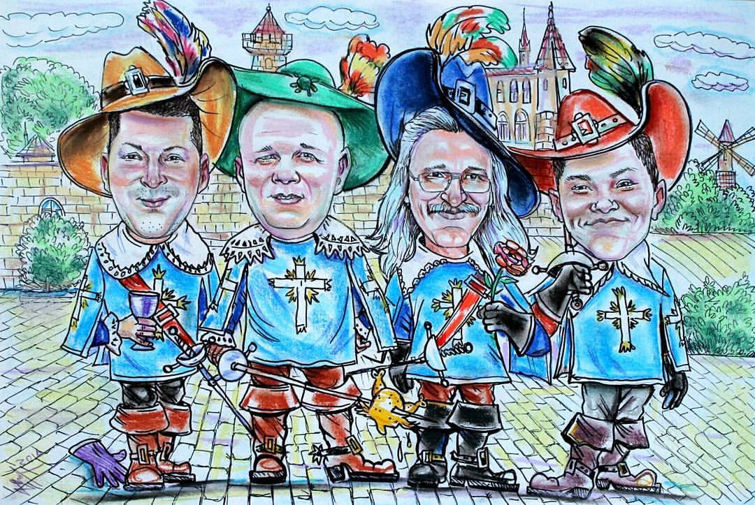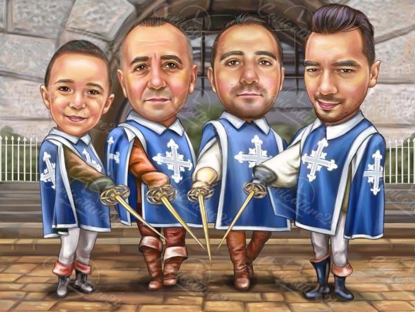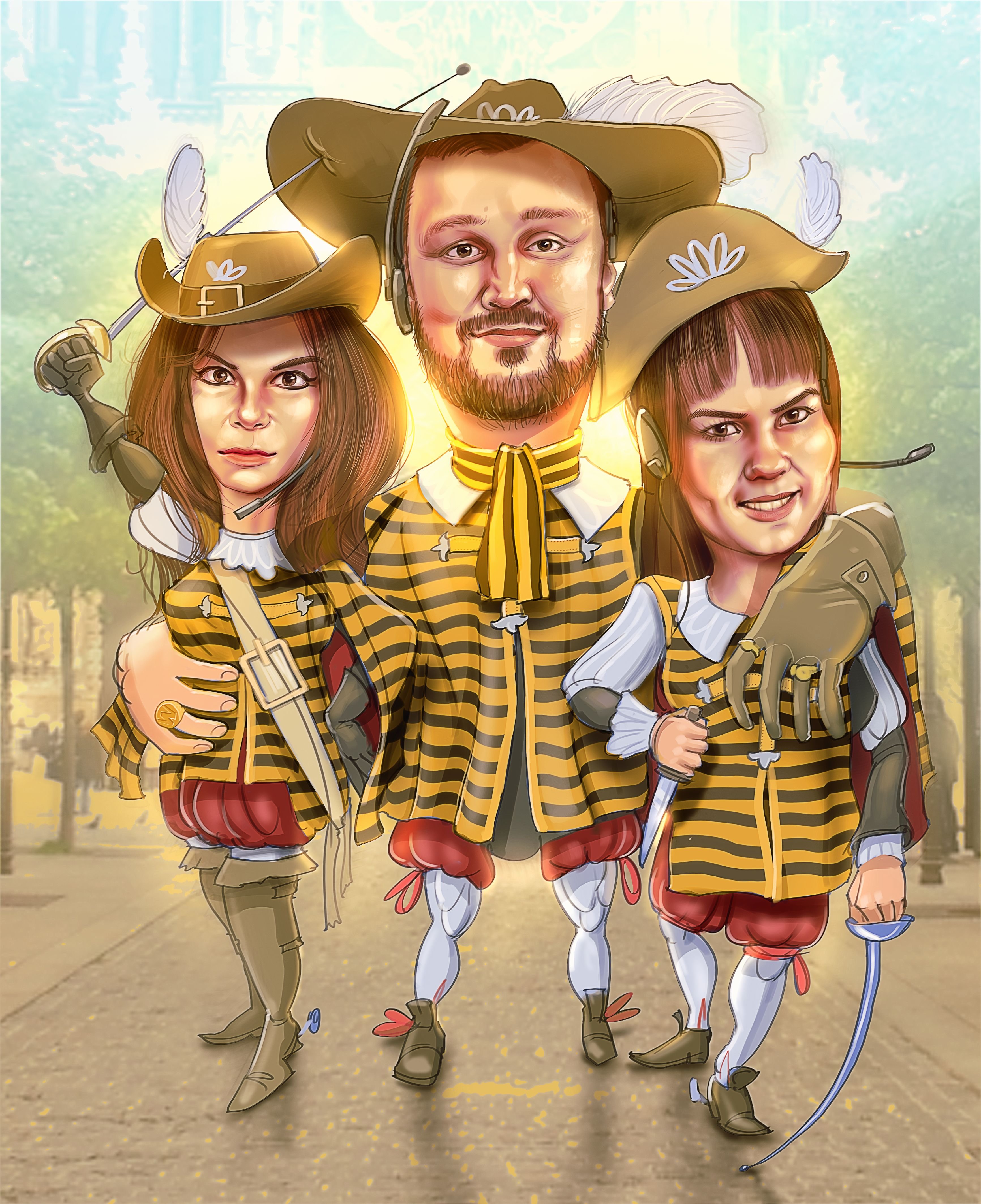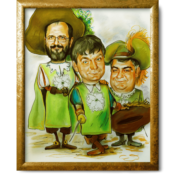 Шарж "Три мушкетера" - это яркое и забавное художественное изображение трех героев, основанных на знаменитом романе Александра Дюма. Этот шарж представляет собой комическую интерпретацию Атоса, Портоса и Арамиса, известных своими подвигами и приключениями. Отличительной особенностью этого шаржа является способность передать не только внешний облик персонажей, но и их характерные черты и манеры поведения. В результате получается забавное и остроумное изображение трех мушкетеров, которое позволяет зрителям насладиться неповторимым юмором и энергией этого классического произведения.