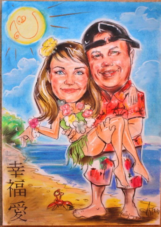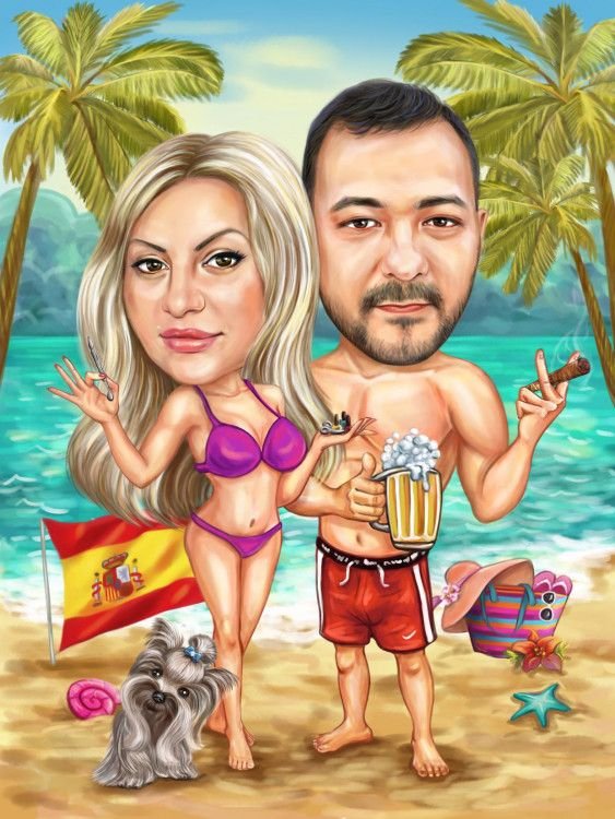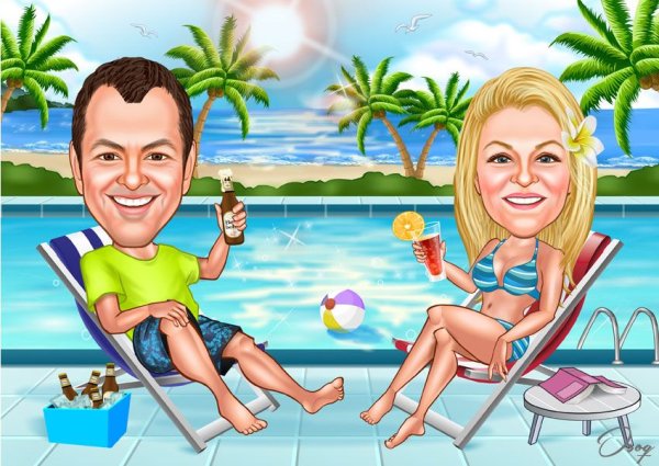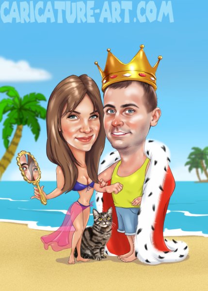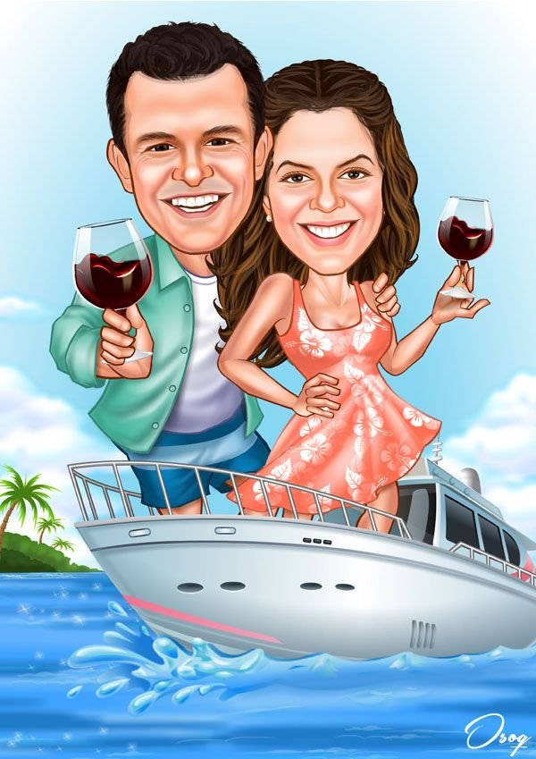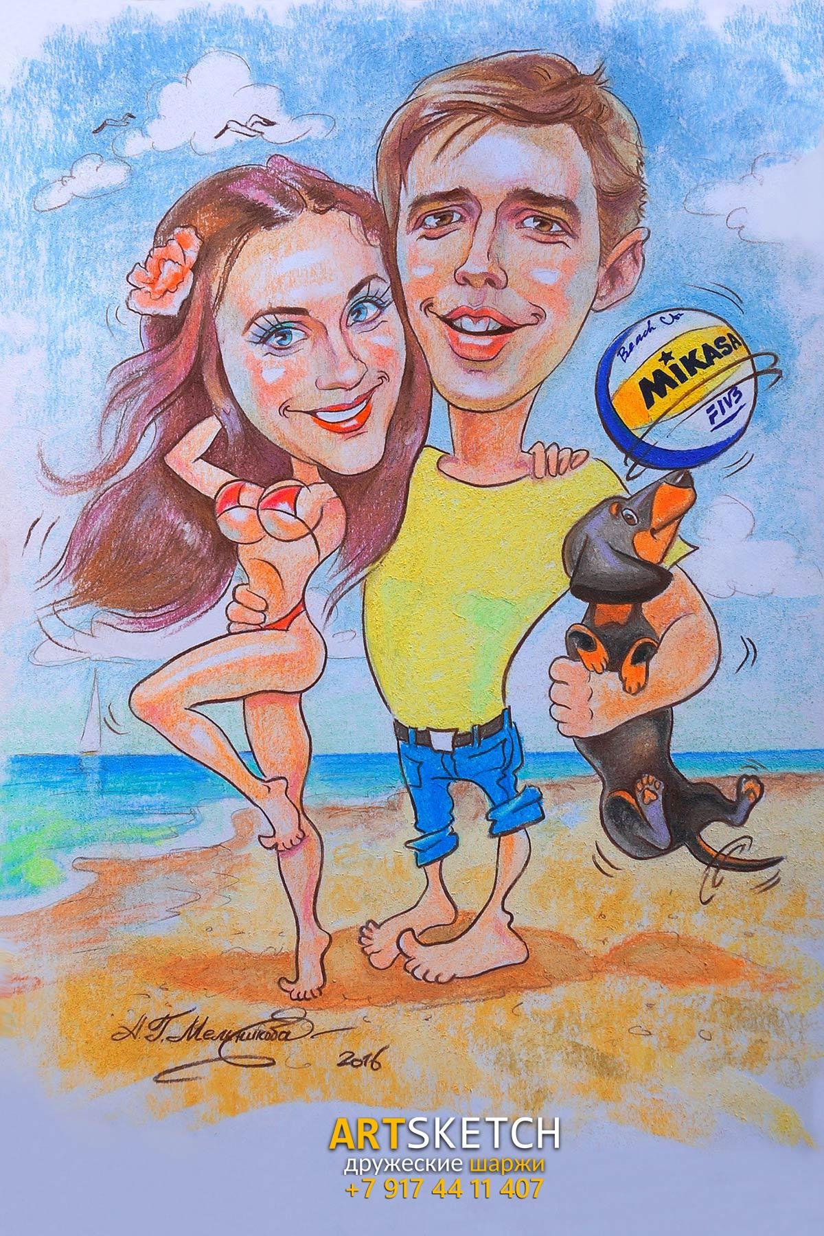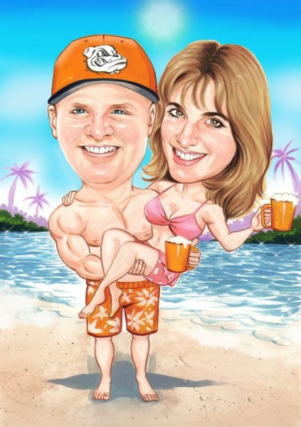 Свежий ветер, ласкающий кожу, идиллический пейзаж с бирюзовыми волнами, и улыбающаяся пара, наполненная радостью и романтикой - все это можно найти в шарже "Пара на море". Этот яркий и остроумный рисунок заставляет улыбнуться и приглашает зрителя окунуться в атмосферу летнего отдыха. Шарж подчеркивает неповторимость момента, запечатлевая не только образы главных героев, но и их эмоции. Он станет прекрасным дополнением для интерьера или прекрасным подарком для тех, кто ценит юмор и любит морские приключения.