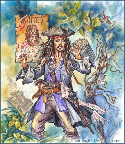 Джек Воробей - культовый персонаж из популярной франшизы "Пираты Карибского моря". Шарж на Джека Воробья - это комическое или карикатурное изображение, которое подчеркивает его характерные особенности: забавную походку, непоседливый и живой взгляд, а также его непредсказуемость и частое попадание в запутанные ситуации. Шарж на Джека Воробья является ярким и запоминающимся способом передать его уникальность и оригинальность. Он становится отличным подарком для поклонников фильмов о пиратах и привносит в интерьер долю приключений и юмора.