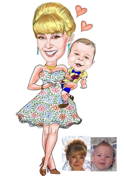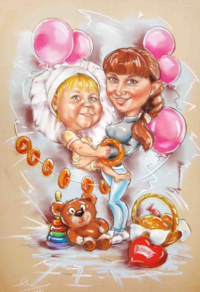 Шарж мама с ребенком - это живописный и юмористический образ, зафиксированный на холсте или бумаге. В таком шарже изображается мать в компании своего ребенка, часто с элементами карикатуры или преувеличения особенностей их внешности или поведения. Цель такого шаржа - вызвать улыбку у зрителя и подчеркнуть некоторые типичные ситуации, возникающие между матерью и ребенком. Часто в таких работах используются яркие цвета и выразительные жесты, чтобы максимально передать эмоциональную составляющую отношений мамы и ребенка. Шаржи мамы с ребенком пользуются популярностью у любителей искусства и становятся интересным и оригинальным подарком для молодых мам и родственников.