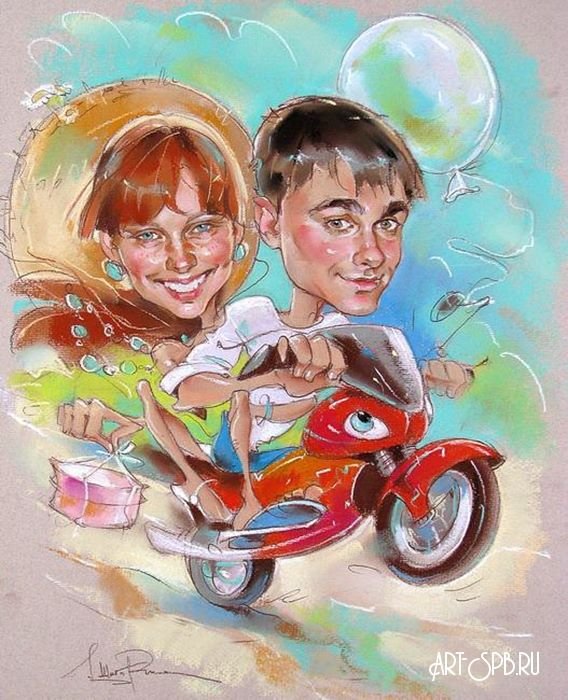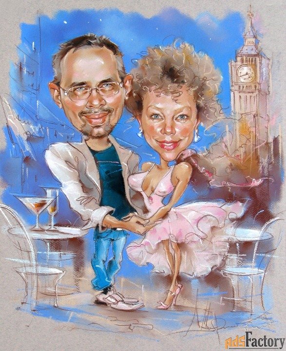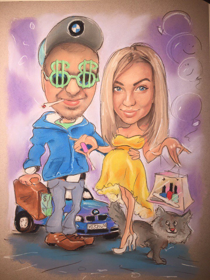 Шарж пастелью - это техника рисования, в которой используется пастельная графика для создания карикатурных и выразительных портретов или изображений. В основе этой методики лежит использование ярких и насыщенных цветов, мягких переходов и мазков, которые придают работам живость и динамичность. Черты лица и фигуры усиливаются, а некоторые детали могут быть преувеличены для того, чтобы достичь комического или сатирического эффекта. Шарж пастелью отличается своей экспрессивностью и остротой передачи характера и особенностей объекта, что делает его популярным средством для создания карикатур и юмористических иллюстраций.