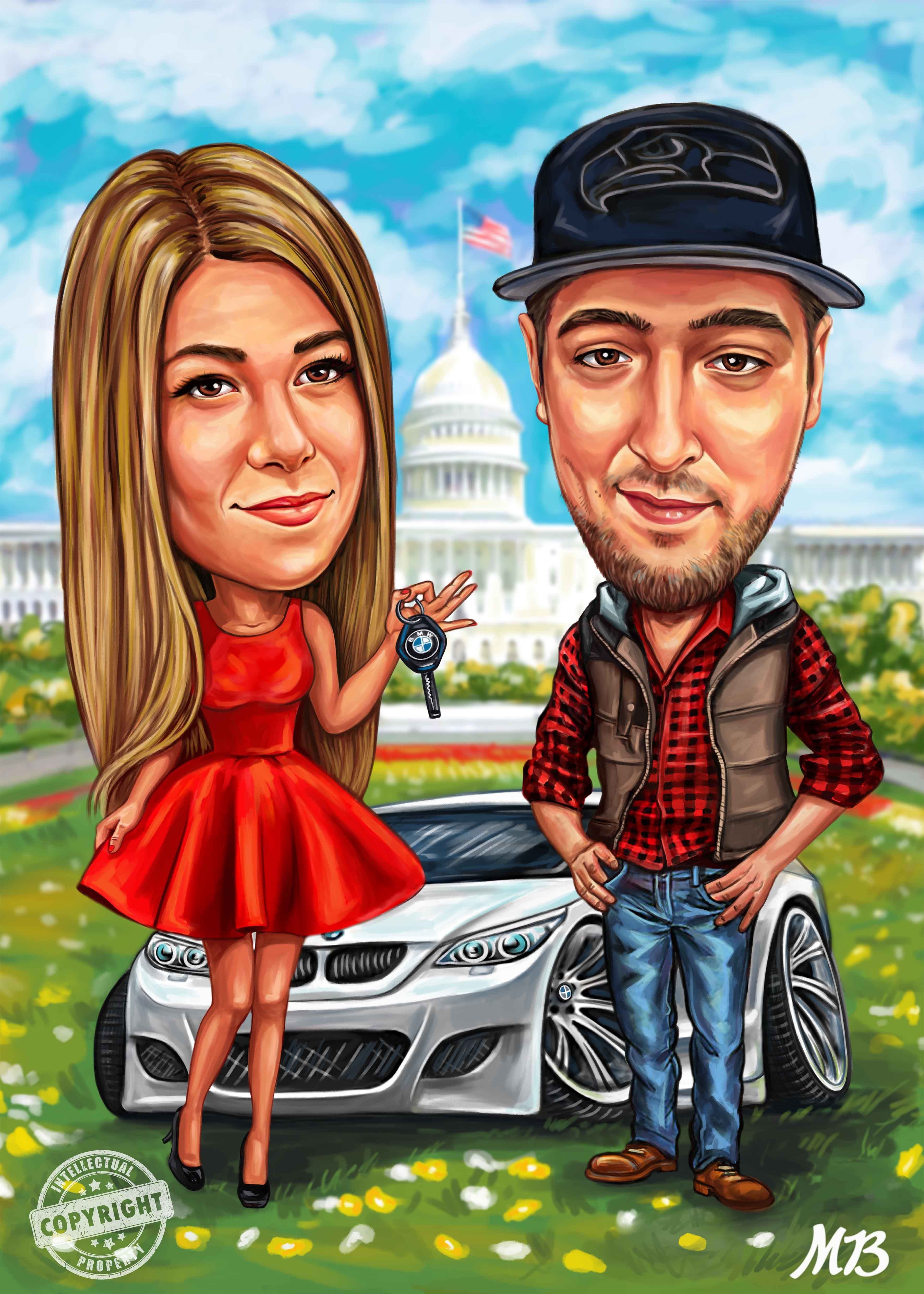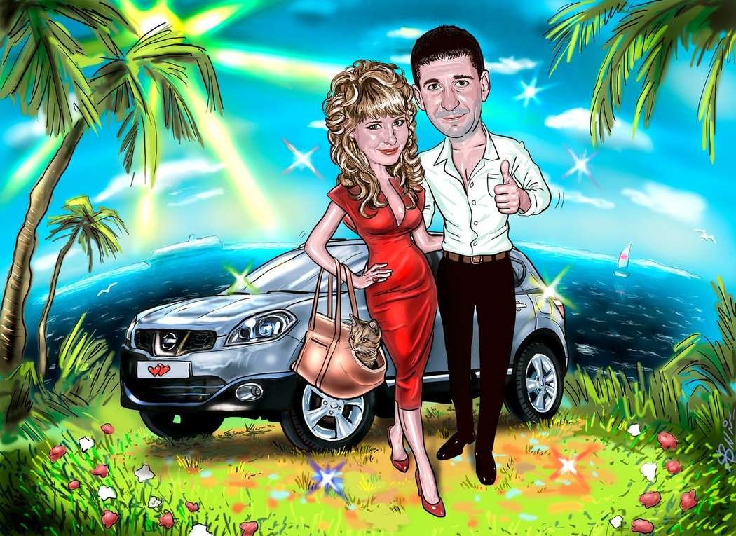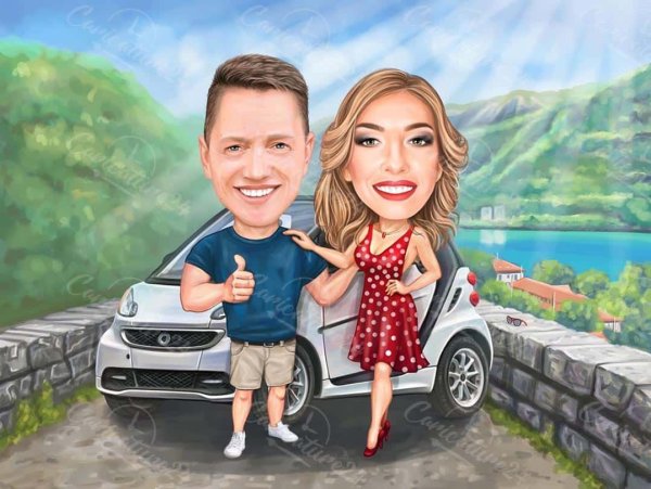 Шарж пара в машине - это уникальное и забавное изображение, которое позволяет весело иронизировать над обыденностью наших повседневных поездок на автомобиле. Художественно выполненный шарж отражает ситуацию, когда два человека находятся в автомобиле и передает атмосферу расслабленности, юмора и беспечности на дороге. Этот шарж не только вызывает улыбку, но и акцентирует внимание на некоторых стандартных ситуациях, связанных с автомобильными поездками, что делает его привлекательным для использования в различных медиа-проектах, рекламе или просто как хорошее настроение на вашей стене.