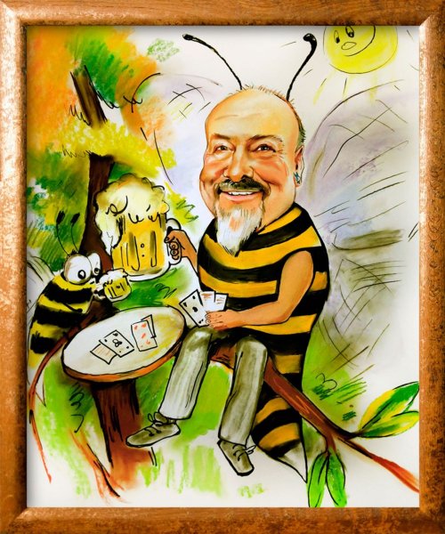 Шарж "Пчеловод на пасеке" - это яркая и остроумная художественная работа, которая отображает сцену из жизни пчеловода на его пасеке. В этом шарже весело и сатирично показаны основные действия пчеловода, такие как сбор меда, проверка ульев и обращение с пчелами. Художник умело передал атмосферу раннего утра на пасеке, используя яркие цвета и динамичные линии. Этот шарж непременно вызывает улыбку и приносит радость всем любителям пчеловодства или просто хорошего чувства юмора.