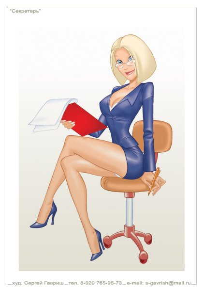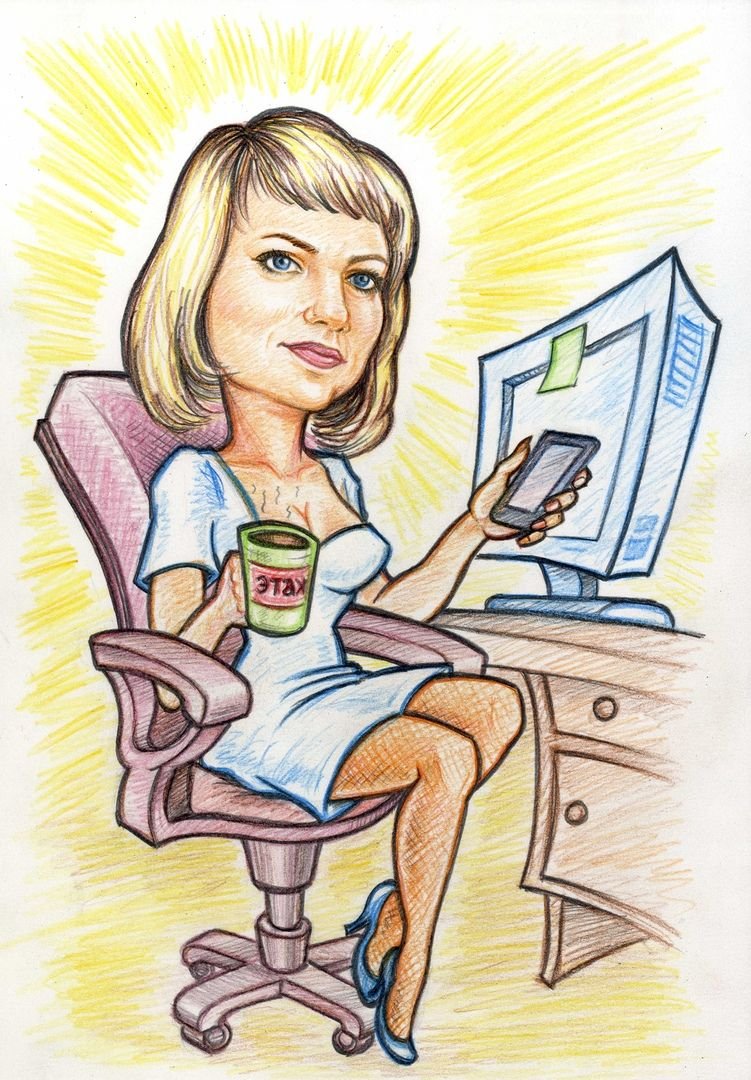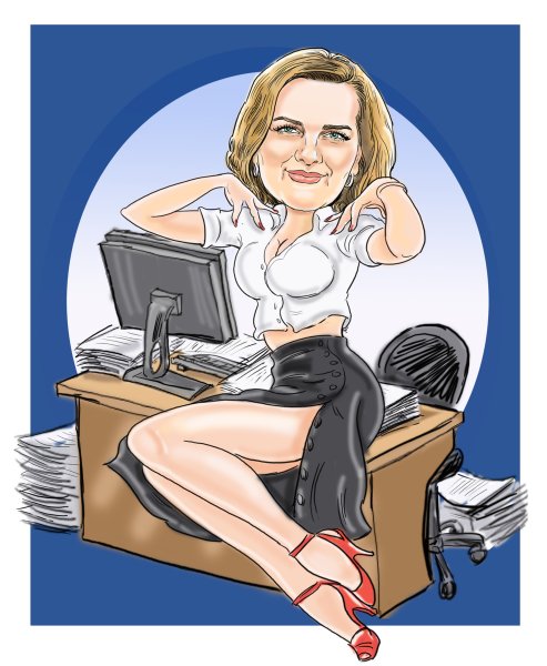 Шарж "Секретарша" представляет собой карикатурное изображение женского офисного работника, чья основная обязанность - помощь руководству в организационных и административных вопросах. В данном шарже секретарша изображена с яркой и выразительной мимикой, акцентирующей ее профессионализм и уверенность в своих действиях. Отличительные черты этого шаржа - аккуратный стиль одежды, характерные элементы рабочего места и настороженное выражение лица, что придает ей небольшую долю загадочности. Этот шарж идеально подходит для использования в различных бизнес-сферах, в качестве иллюстрации для презентаций, рекламных материалов или корпоративных печатных изданий. Он не только привлекает внимание, но и добавляет нотку юмора в серьезные рабочие процессы, создавая позитивную атмосферу и поднимая настроение.