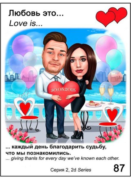 Приготовьтесь окунуться в мир элегантности и изысканности с шаржем в стиле "лав из". Этот уникальный стиль рисования поражает своей неповторимостью и тонкостью деталей. Шарж в стиле "лав из" отличается особым изображением лица, где каждая черта усиливается и приобретает уникальные формы и пропорции. Он захватывает взгляд и передает индивидуальность каждого человека в самом ярком свете. Созданный с юмором и любовью, этот шарж станет ярким акцентом вашего интерьера или прекрасным подарком для близких и друзей. Позвольте себе испытать настоящую радость и веселье с шаржем в стиле "лав из".