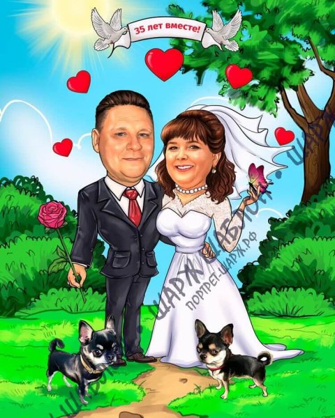 Юбилейные годовщины свадьбы – особый повод для праздника и радости. И если вы хотите удивить и порадовать своих близких, то шарж на годовщину свадьбы 25 лет – отличный выбор. Шарж – это не только оригинальный подарок, но и уникальное произведение искусства, которое запечатлит ваши самые яркие моменты супружеской жизни. Талантливый художник передаст вашу индивидуальность, чувства и юмор в каждой детали рисунка, создавая неповторимую картину, которая будет радовать и вдохновлять вас на протяжении всей жизни вместе. Кроме того, шарж – это забавный способ добавить немного разнообразия и веселья в вашу годовщину и провести время с улыбкой на лице.
