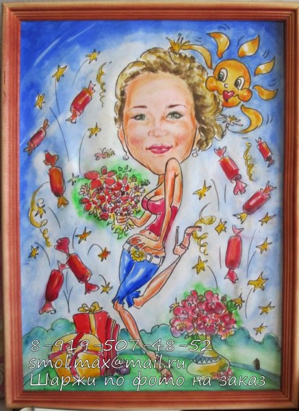 Шарж "Девушка с цветами" - это веселая и яркая карикатура, изображающая молодую девушку, окруженную красочными цветами. В этой шаржированной картине акцент делается на выразительности лица героини, ее эмоциях и характере. Возможно, она обладает неконформистским стилем, веселым и игривым настроением, которые подчеркиваются смелыми красками и необычными пропорциями. Шарж "Девушка с цветами" может быть отличным подарком или украшением, добавляющим ярких красок и позитива в интерьер или коллекцию искусства.