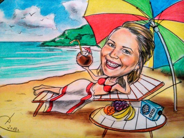 Загорающая девушка на пляже - это истинное воплощение летнего настроения и свободы. Карандашом художник умело обведя контуры ее фигуры, подчеркнул ее изящность и женственность. Веселый и яркий шарж позволяет почувствовать атмосферу пляжного отдыха, с его радостными моментами и незабываемыми впечатлениями. Улыбка на лице девушки, легкий бриз и звуки моря создают идеальную картину для тех, кто наслаждается каждым мгновением летнего солнца и живет в полной гармонии с окружающим миром. Шарж "Девушка на пляже" - отличный выбор для тех, кто хочет добавить в свою жизнь ярких красок и позитивных эмоций.