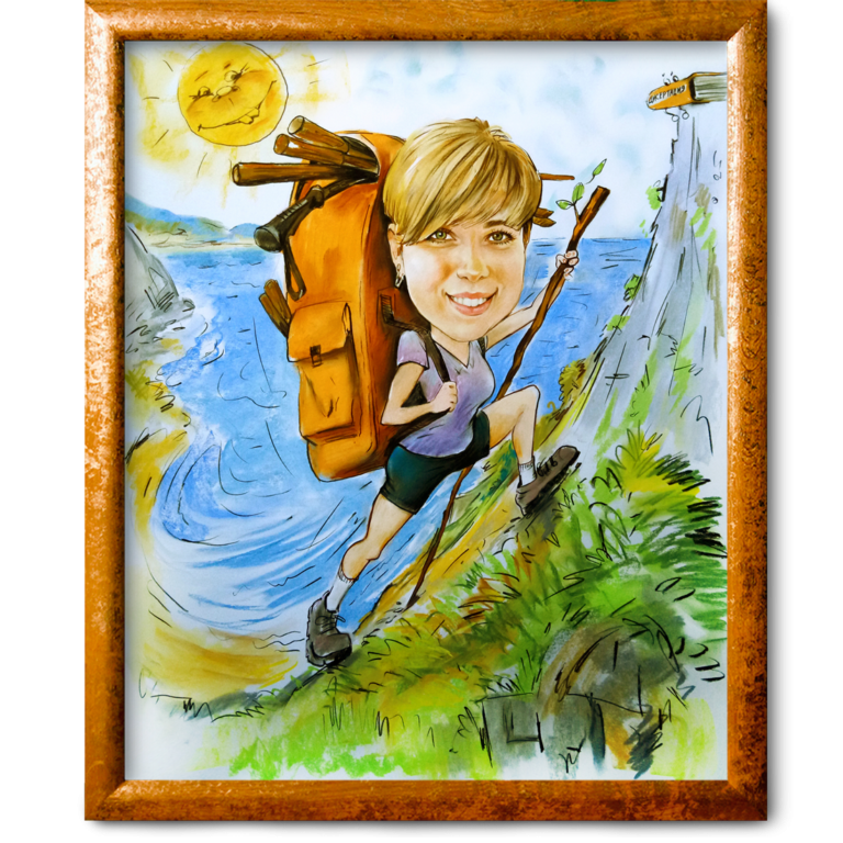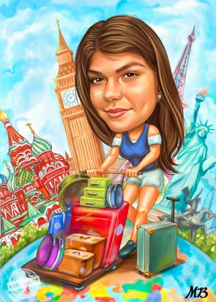 Шарж на женщину путешественницу - это оригинальный и яркий способ изобразить визуально особенности и характер данного персонажа. Женщина путешественница обладает неповторимым стилем и энергией, которые можно выразить через графические элементы и детали шаржа. Отражая ее любовь к приключениям и открытиям, шарж может представить ее с рюкзаком на плече, картой или компасом в руках, а также с веселым и уверенным выражением лица. Используя юмористические и карикатурные приемы, шарж на женщину путешественницу привлекает внимание зрителей и передает основную идею - непрерывное стремление к новым приключениям и необычным местам.