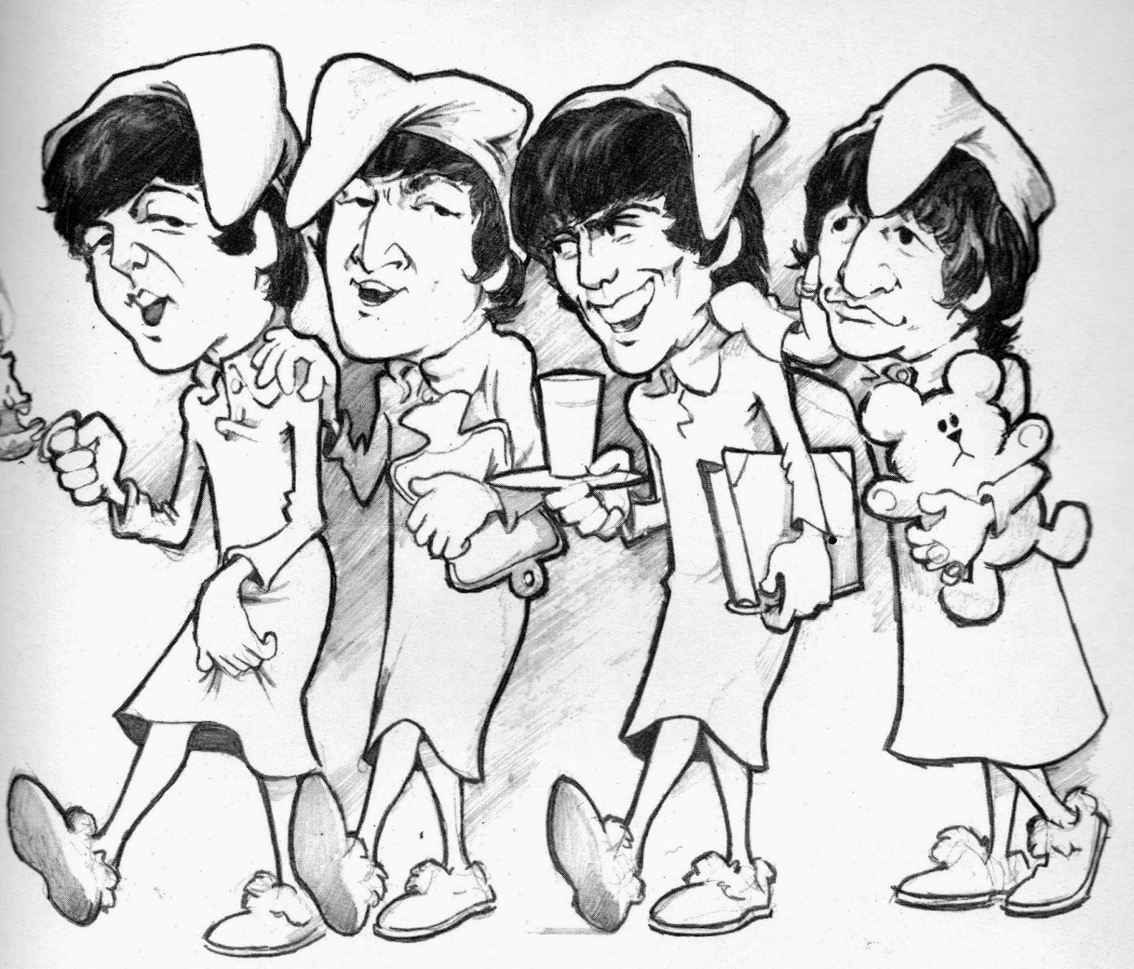 Шарж на Битлз - это забавный и креативный способ изобразить легендарную британскую рок-группу в комическом стиле. Шаржисты мастерски передают характерные черты каждого участника группы, их выразительные лица, прически и стиль одежды, создавая уникальные и узнаваемые портреты. Это отличная идея для подарка или развлечения на мероприятиях, а также отличный способ добавить юмора и оригинальности в интерьер комнаты или офиса. Шарж на Битлз - это не только весело, но и позволяет воссоздать атмосферу доброго настроения и великой музыки, которую принесла эта легендарная группа.