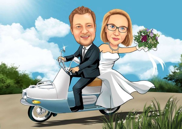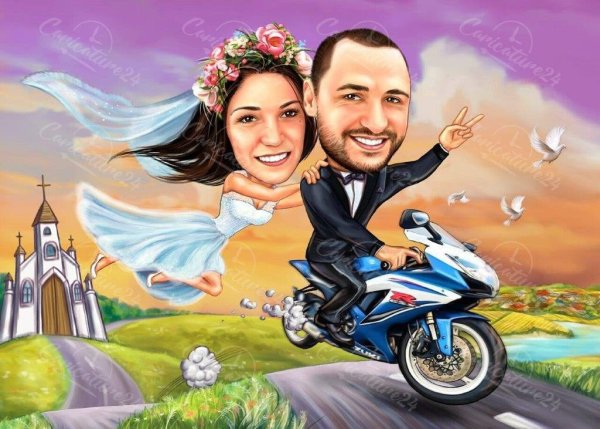 Шарж свадебный на мотоцикле - это оригинальное и захватывающее зрелище, которое добавит неповторимый шарм и энергию вашей свадьбе. Этот необычный акцент позволяет создать яркие и запоминающиеся фотографии, которые будут радовать вас и ваших гостей на протяжении всей жизни. Отличная альтернатива традиционным формам свадебного транспорта, свадебный шарж на мотоцикле придает мероприятию долю приключения и романтики. Будьте уверены, что такой необычный выбор не оставит никого равнодушным и сделает вашу свадьбу по-настоящему незабываемой.