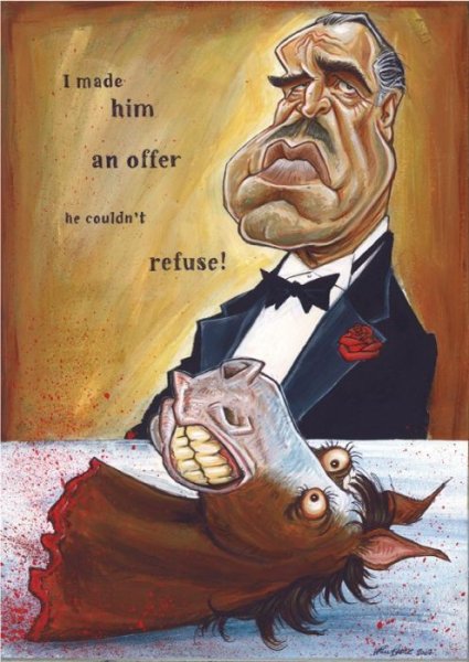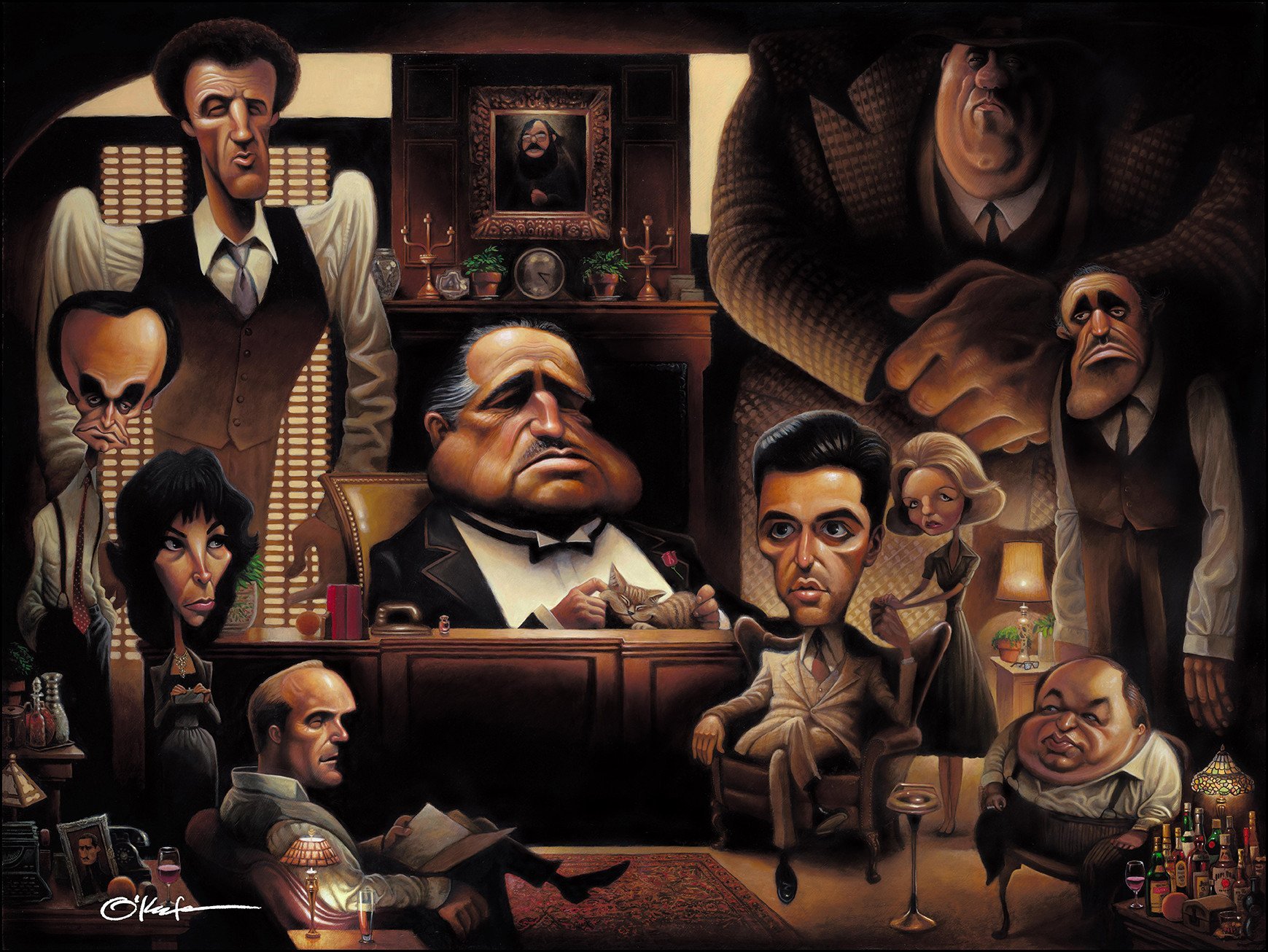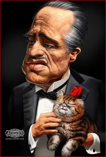 Шарж "Крестный отец" - это уникальная и оригинальная картина, выполненная в жанре шаржа. В этом произведении искусства изображены знаменитые персонажи из фильма "Крестный отец". Каждая деталь и выражение лица передают характер и индивидуальность каждого героя. Шарж "Крестный отец" является прекрасным подарком для поклонников этой культовой киноленты или просто любителей необычной и остроумной живописи. Он станет прекрасным украшением интерьера или сувениром, который вызовет улыбку и приятные эмоции. Позвольте себе окунуться в мир мафиозных интриг и элегантности с шаржем "Крестный отец".