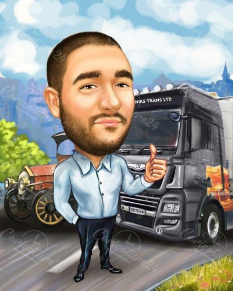 Шарж водителя КамАЗа - это уникальное изображение, которое отражает особенности и характер этой профессии. Через яркие детали и экспрессивные жесты, шарж передает энергию и силу водителя КамАЗа, его мастерство и уверенность на дороге. Отчетливо просматривается мужественная фигура водителя за рулем грозного грузовика, подчеркивая его опыт и надежность. Такой шарж станет отличным подарком для водителя КамАЗа или прекрасным элементом интерьера, которому необходимо добавить динамику и агрессивность.