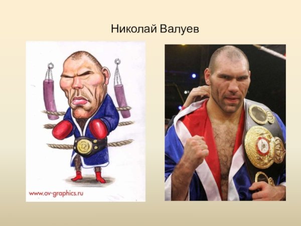 Шарж Валуева - это яркий и неповторимый художественный портрет, который выражает особую индивидуальность и характер известного боксера Николая Валуева. В этой уникальной работе используется комбинация выразительных черт лица и физических особенностей спортсмена, которые подчеркивают его величие и силу. Шарж Валуева передает не только внешние черты и особенности лица, но и позволяет увидеть его энергию, стойкость и отвагу. Это произведение искусства является отличным подарком для поклонников бокса и всех тех, кто уважает талант и достижения Николая Валуева.