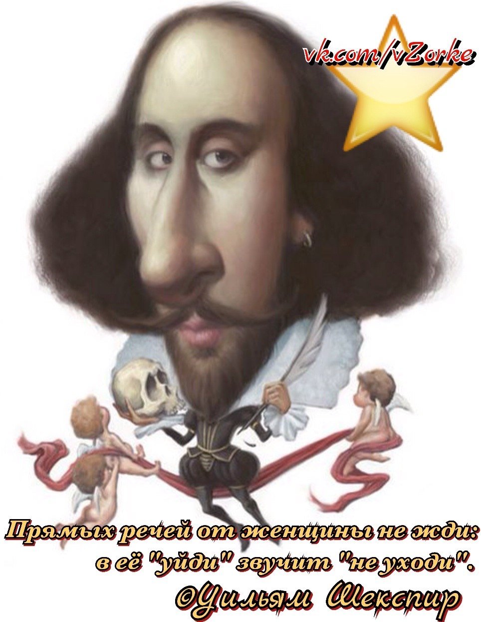 Шекспир шарж - это выразительное и карикатурное изображение великого английского драматурга Уильяма Шекспира. Искусство шаржа позволяет подчеркнуть особенности внешности, манеры поведения и характерные черты личности. В данном случае, шарж на Шекспира может быть ироничным, с чрезмерно увеличенными чертами его лица, такими как глаза, нос или борода, что создает комический эффект. Такое изображение может быть использовано в различных контекстах, начиная от карикатурных и юмористических материалов до театральных постановок или иллюстраций к книгам о жизни и творчестве Шекспира. Шекспир шарж - это необычный способ передать особенности этого известного литературного гения, придавая им остроту и неповторимый шарм.