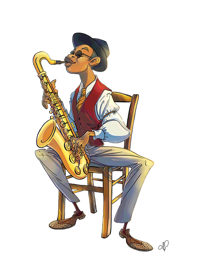 Шарж саксофониста - это веселое и оригинальное изображение музыканта, играющего на саксофоне. В этом шарже можно увидеть яркий колорит, экспрессивные жесты и выражение лица саксофониста, который полностью погружен в свое исполнение. Карикатурный стиль подчеркивает характерные черты музыканта и придает ему дополнительную энергию и юмор. Шарж саксофониста идеально подойдет для украшения интерьера, подарка музыкальному любителю или как элемент декора на музыкальных мероприятиях и фестивалях.