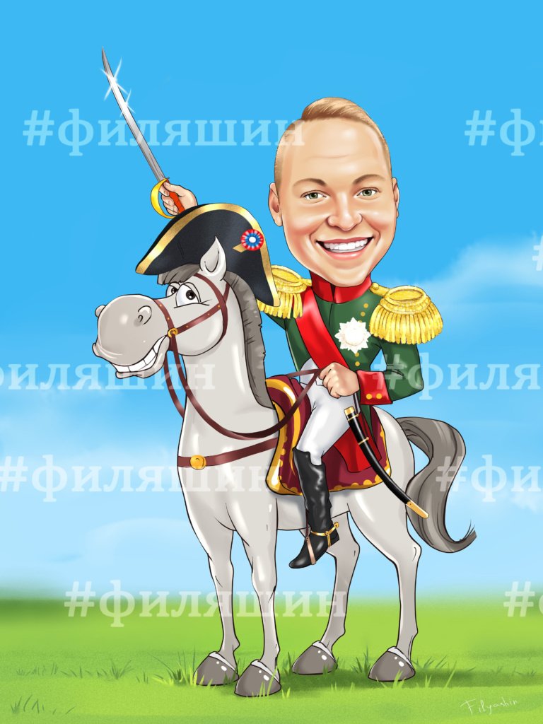 Шарж "Принц на белом коне" - это изысканная и оригинальная художественная работа, которая отображает прекрасное сочетание элегантности и фантазии. В этом шарже изображен принц, сидящий на своем верном белом коне, что символизирует его благородство и мощь. Художник умело передал выразительность и грацию движений, придавая образу принца неповторимую ауру величия и романтики. Каждая деталь шаржа тщательно проработана, создавая живописную картину, которая вызывает восторг и восхищение у зрителя. Это произведение искусства является не только прекрасным украшением для интерьера, но и отличным подарком для ценителей художественной росписи.
