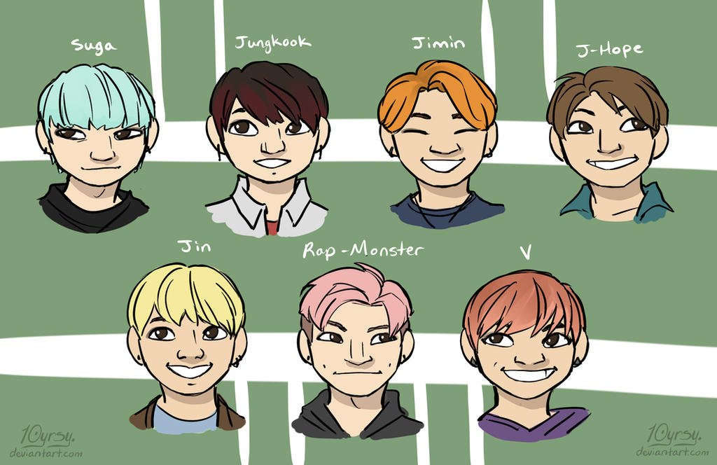 Шаржи БТС - это забавные и креативные рисунки, выполненные в стиле карикатуры, изображающие участников популярной южнокорейской группы БТС. Эти шаржи являются отличным способом выразить свою любовь и поддержку этим талантливым артистам. Каждый шарж характеризуется уникальностью и остротой деталей, передающих особенности каждого участника группы. Шаржи БТС стали популярными среди фанатов по всему миру и являются прекрасным подарком для всех поклонников музыки и творчества этой знаменитой группы.