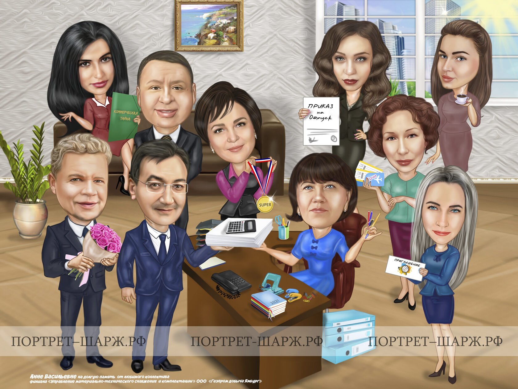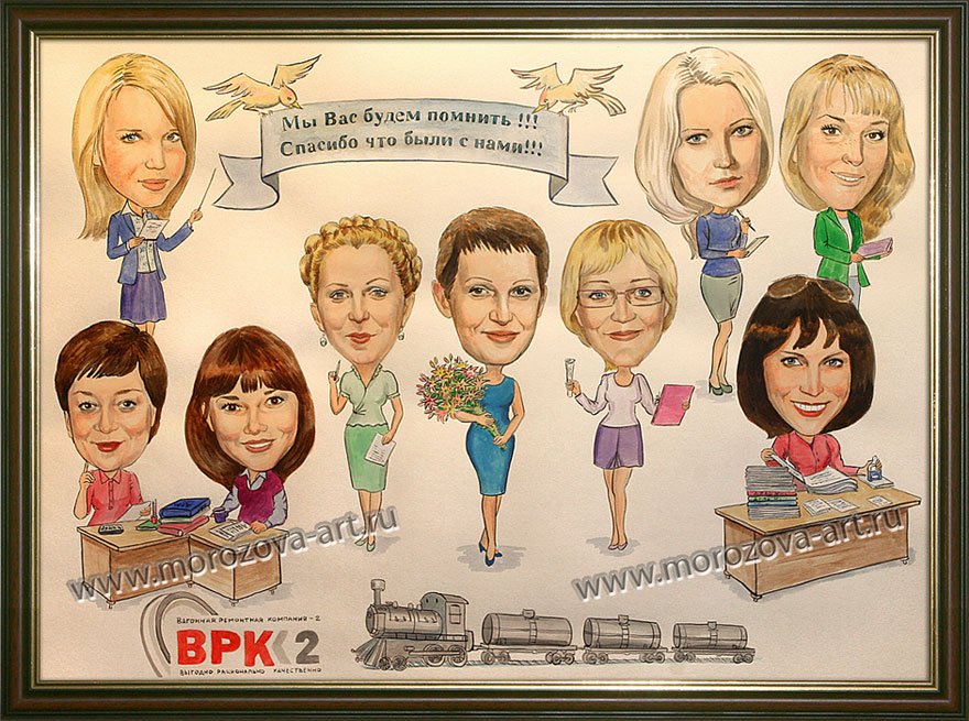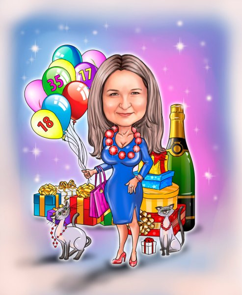 Шарж – это отличный подарок на юбилей коллеге-женщине! Неповторимый и оригинальный, он позволяет весело и с юмором отобразить особенности и характерные черты именинницы. Шарж поможет создать атмосферу праздника и весело развлечь гостей. Он станет ярким украшением мероприятия и прекрасной памятью для именинницы. Этот нестандартный подарок точно поднимет настроение и запомнится надолго!