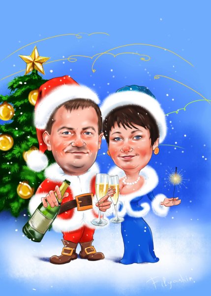 Дед Мороз и Снегурочка в шарже - это забавные и красочные персонажи, которые привносят радость и праздничное настроение. В этой интерпретации они выглядят смешными и карикатурными, с яркими костюмами и необычными пропорциями. Шаржированные Дед Мороз и Снегурочка станут отличным дополнением на новогодней вечеринке или мероприятии, добавляя юмора и забавы. Они запоминаются своей неповторимой внешностью и способны вызвать улыбку у каждого гостя. Будьте уверены, что в компании шаржированных Деда Мороза и Снегурочки никто не останется равнодушным!