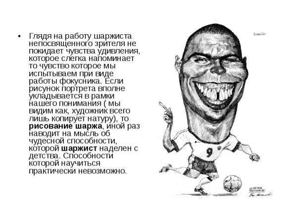 Шарж – это жанр изобразительного искусства, который позволяет передать особенности внешности или характера человека в комической или карикатурной форме. Часто использованный в политической сатире, шарж может выделять яркие черты лица, увеличивать некоторые детали или даже преувеличивать определенные аспекты личности. Благодаря своей экспрессивности и юмористическому подходу, шаржи приносят радость и развлечение, а также служат средством критики и выражения социальных или политических взглядов. В результате, шаржи являются не только искусством, но и мощным инструментом для передачи сообщений и вызова эмоциональной реакции у зрителей.