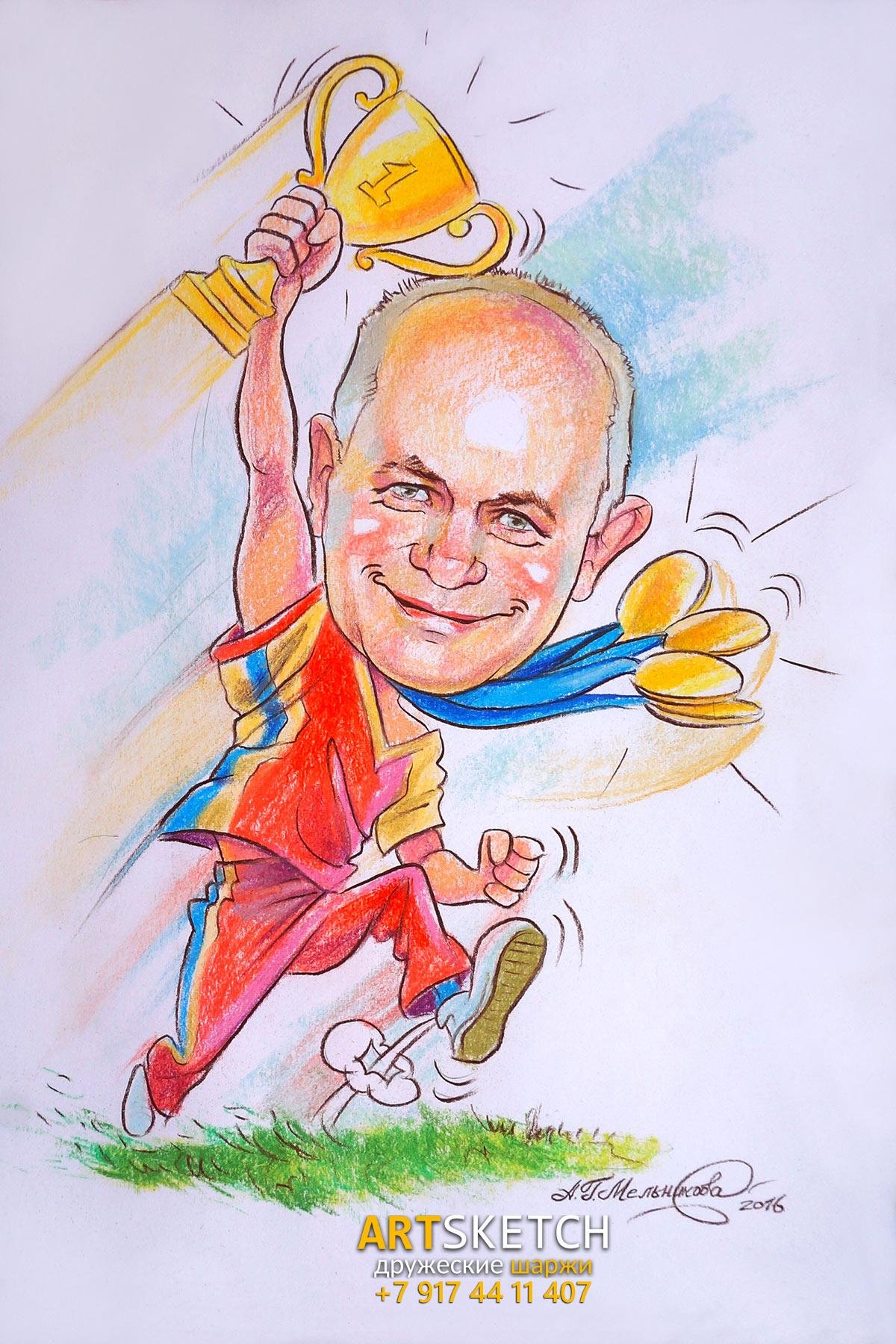 Шарж легкоатлет - это уникальное и оригинальное художественное изображение, которое отражает спортивную активность легкоатлетики с примесью комичности и карикатуры. Этот жанр искусства позволяет передать особенности физической формы и движений спортсменов в яркой и выразительной манере, придавая им некоторую забавность. Шаржи легкоатлетов часто используются в качестве декораций для спортивных мероприятий, рекламных материалов или просто как элементы интерьера для создания атмосферы энергии, здоровья и активного образа жизни. Они не только вызывают улыбку, но и придают динамичность и настроение любому помещению. Великолепно передавая спортивный дух и энтузиазм, шаржи легкоатлетов становятся незаменимым элементом визуального искусства.