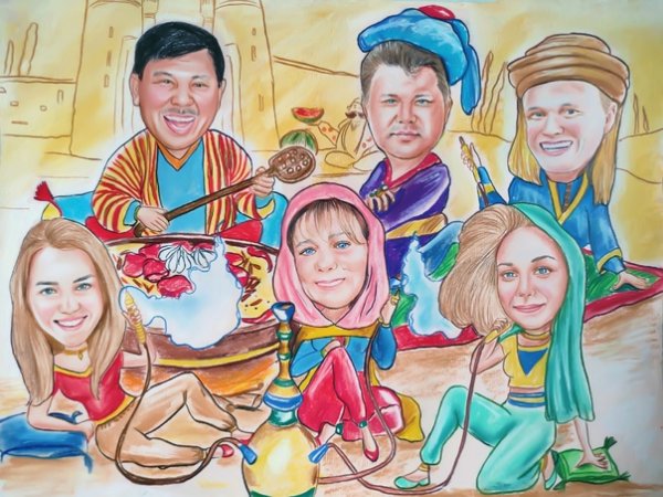 Восточный шарж - это уникальное и захватывающее искусство, которое сочетает в себе элементы карикатуры, комедии и экзотики восточной культуры. Он отличается яркими красками, изящностью линий и эффектными деталями, которые мастерски передают особенности и характеры изображаемых персонажей. Восточный шарж привлекает внимание своей остроумностью и непредсказуемостью, создавая атмосферу веселья и развлечения на любом мероприятии. Будь то свадьба, юбилей или корпоративное мероприятие, восточный шарж станет ярким и запоминающимся акцентом, который подарит радость и улыбки каждому гостю.