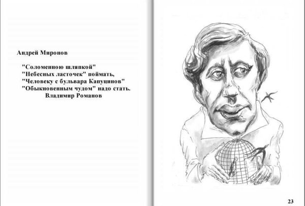 Андрей Миронов - легендарный российский актер, комик и шаржист, чья талантливая импровизация и яркий юмор сделали его настоящей звездой. В мире шаржа он достиг вершин успеха, создавая неповторимые портреты известных личностей со своим узнаваемым стилем и щекотливыми деталями. Андрей Миронов был мастером в передаче особенностей внешности и характера людей, делая свою работу эмоциональной и остроумной. Его шедевры в мире шаржа до сих пор остаются популярными и любимыми среди поклонников и ценителей искусства.