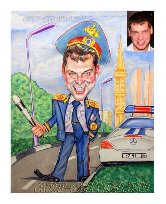 Веселый и остроумный, шарж полицейского мужчины - это идеальное дополнение для любой вечеринки или события. Он порадует гостей своим ярким внешним видом и неподражаемыми чертами лица, которые подчеркивают его авторитет и профессионализм. Ширина плеч, строгий взгляд и уверенная осанка создают образ настоящего защитника правопорядка, но в то же время добавляют нотку юмора и легкости. Шарж полицейского мужчины - отличное решение для тех, кто хочет поднять настроение и создать незабываемую атмосферу на любом мероприятии.