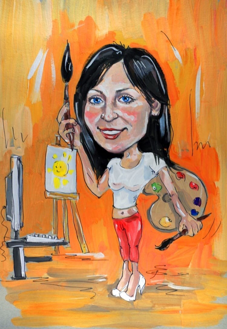 Шарж девушка художник - это карикатурное изображение молодой женщины, которая проявляет свои таланты в искусстве. В этом шарже уловливаются особенности ее внешности и поведения, с помощью преувеличений и комических элементов. Художник нарисовал ее со специфическим стилем, чтобы передать ее индивидуальность и творческий подход к жизни. Шарж девушка художник может вызвать улыбку и заставить задуматься о творчестве и разнообразии искусства. Эта карикатура идеальна для использования в рекламных материалах или на сайтах, чтобы выделиться среди конкурентов и привлечь внимание целевой аудитории.