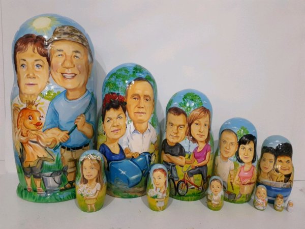 Матрешка шарж - это оригинальная и креативная версия традиционной русской матрешки. Эти уникальные игрушки выделяются своим ярким и смешным дизайном, который представляет из себя карикатурную версию известных персонажей или знаменитостей. Каждая фигурка матрешки шарж имеет несколько секций, которые можно раскрыть, чтобы обнаружить более мелкие фигурки внутри, создавая неповторимый эффект "количества в одном". Матрешка шарж - это отличный подарок для коллекционеров, любителей художественных предметов или просто для тех, кто ценит оригинальность и юмор в предметах интерьера. Она станет украшением любого дома и привлечет внимание гостей своей уникальностью и интригующим дизайном.