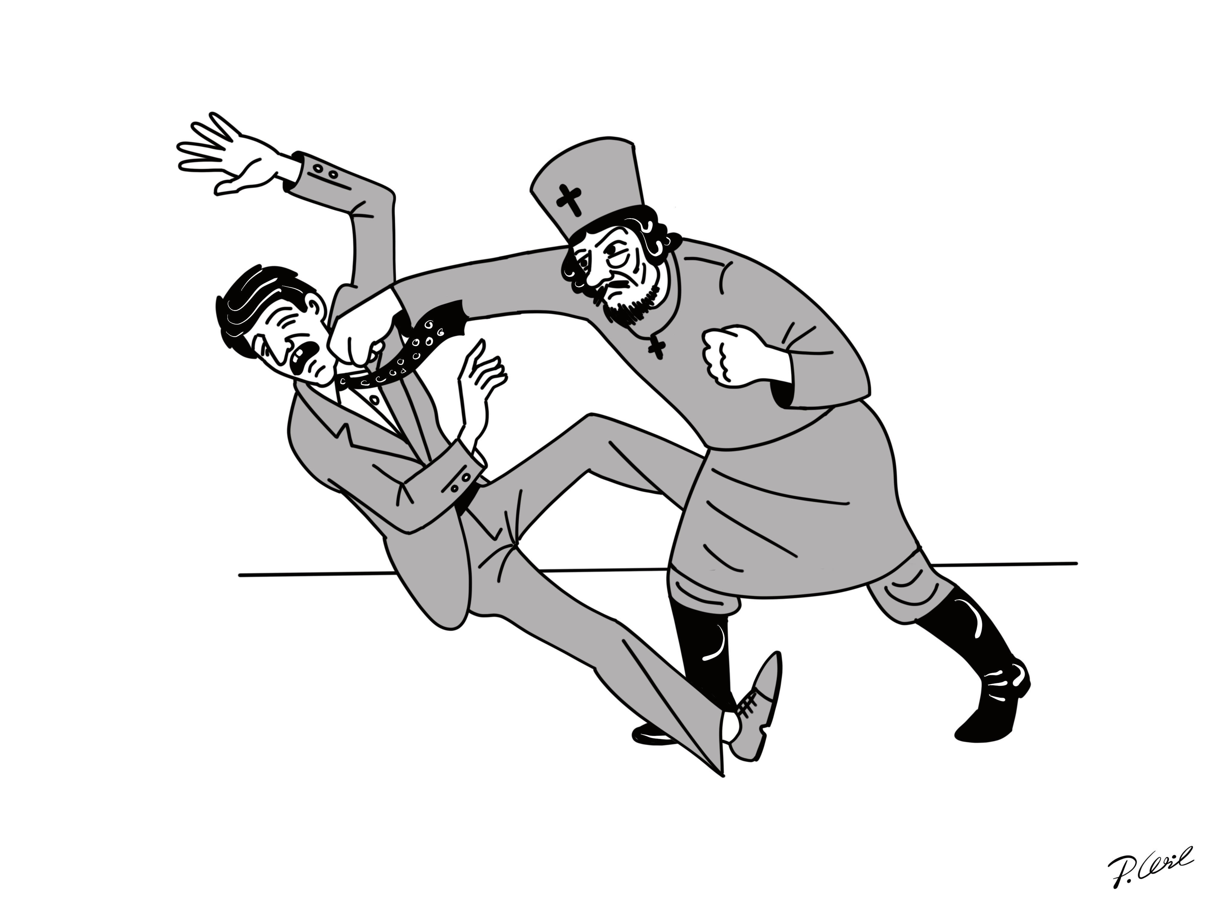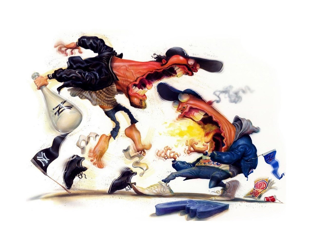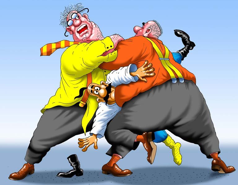 Шарж драка - это жанр юмористического изображения, в котором насмешливо и сатирически изображены сцены с рукопашными схватками и драками. В таких шаржах обычно преувеличиваются физические особенности и выражения лиц участников, что придает им комический эффект. Будь то два политика, спортсмена или просто случайные персонажи, шарж драка предлагает зрителю возможность посмеяться над различными ситуациями и поведением людей в моменты конфликта. Эти яркие и забавные работы идеально подходят для использования в качестве иллюстраций в комедийных публикациях, карикатурных журналах, а также на сайтах и социальных сетях для создания позитивного настроения и вызывания улыбок у зрителей.