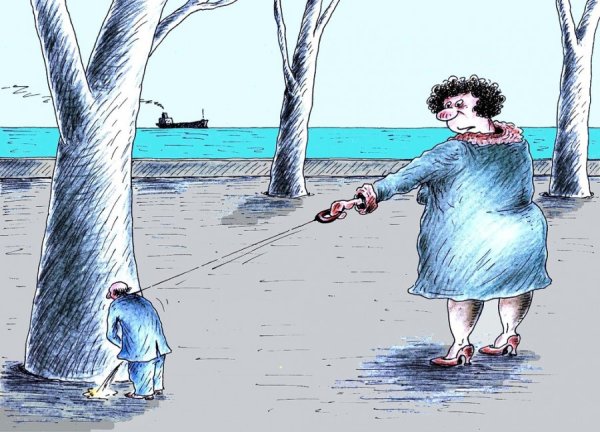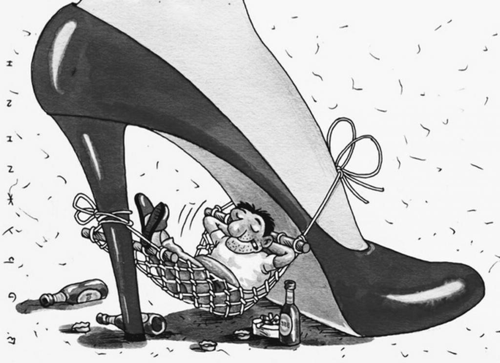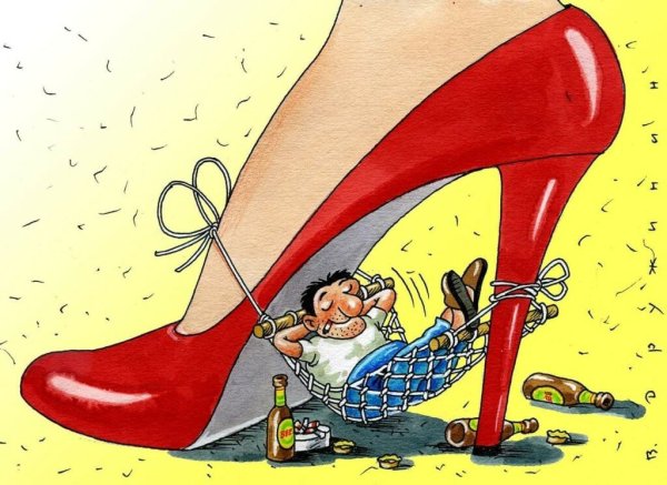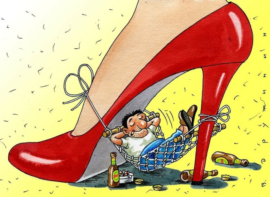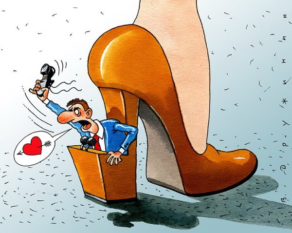 Подкаблучник - это комическая шаржировка, которая изображает мужчину, находящегося в подчиненном положении перед своей партнершей. Эта фраза часто используется для описания ситуации, когда мужчина проявляет низкую самооценку и подчинение в отношениях с женщиной. Шарж подкаблучника обычно включает в себя карикатурные черты, такие как маленький рост, слабость или неуверенность, а также яркие акценты на одежде и прическе. Этот персонаж часто представлен с юмором и используется для иллюстрации социальных и гендерных динамик в парах.