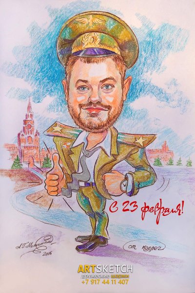 Дружеские шаржи на 23 февраля - это оригинальный и веселый способ поздравить мужчину с этим праздником. Шаржи - это карикатурные портреты, которые отличаются яркими и выразительными чертами лица и фигуры. Они создаются профессиональными художниками, которые умеют ловко передать особенности каждого человека, добавив немного юмора и игры слов. Такой подарок не только вызывает улыбку и положительные эмоции, но и становится оригинальным и запоминающимся презентом на 23 февраля. Шаржи можно заказать как в онлайн-формате, так и получить их в виде печатной картины или постера. Подарите друзьям и близким уникальное впечатление на День защитника Отечества с помощью дружеских шаржей на 23 февраля.