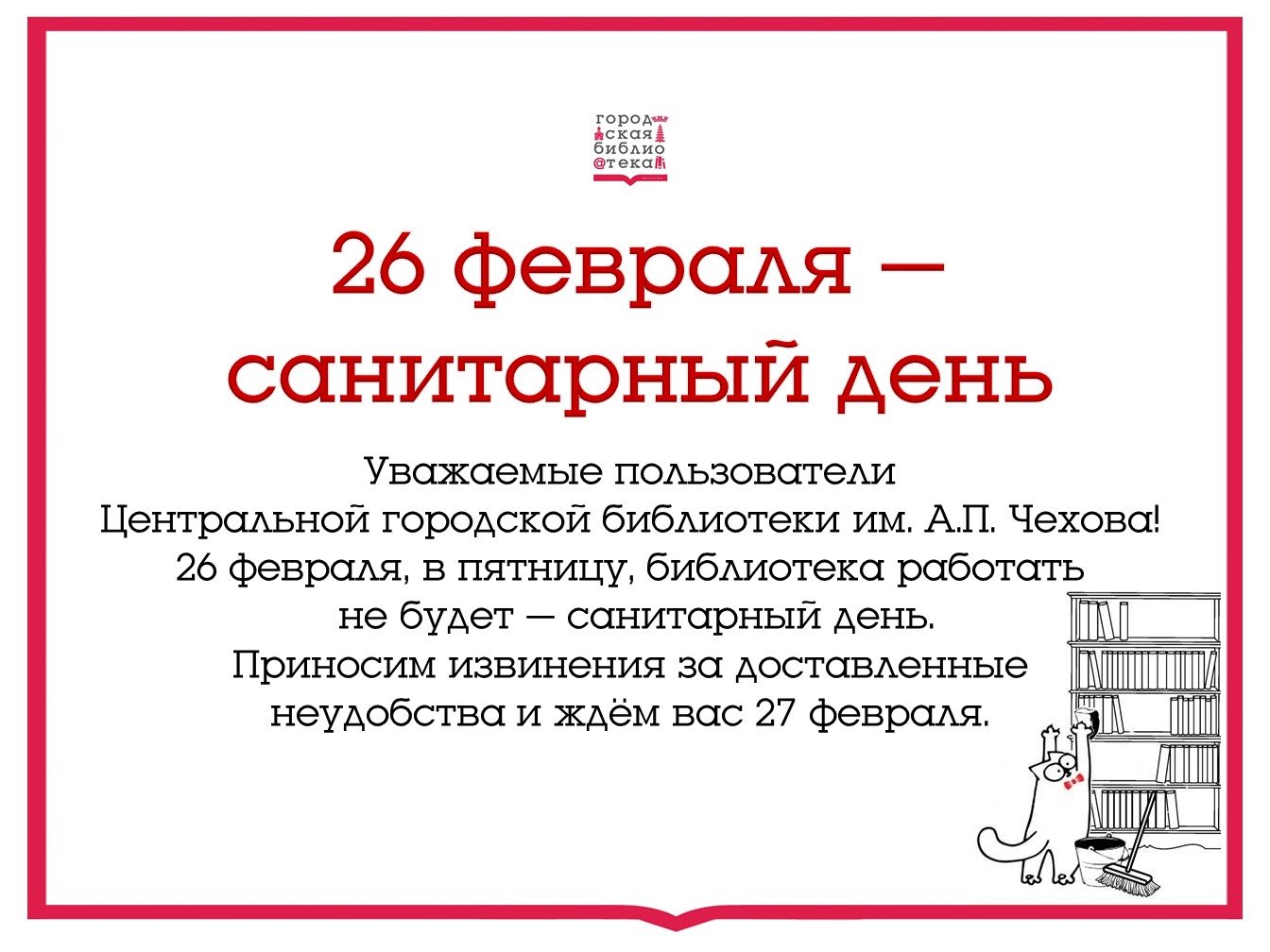 ![Уважаемые читатели сегодня в библиотеке санитарный день]()