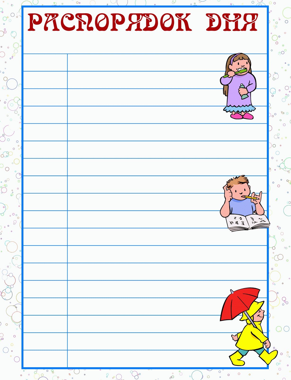 Расписание дня для ребенка