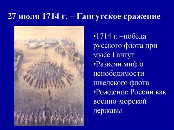 ![1714, 27 Июля — Гангутское сражение]()