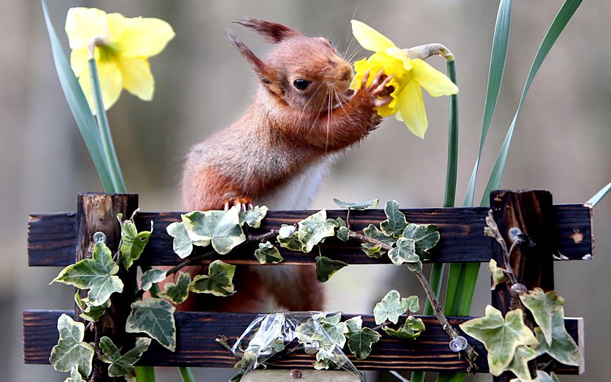 Прикольный зверек с цветком