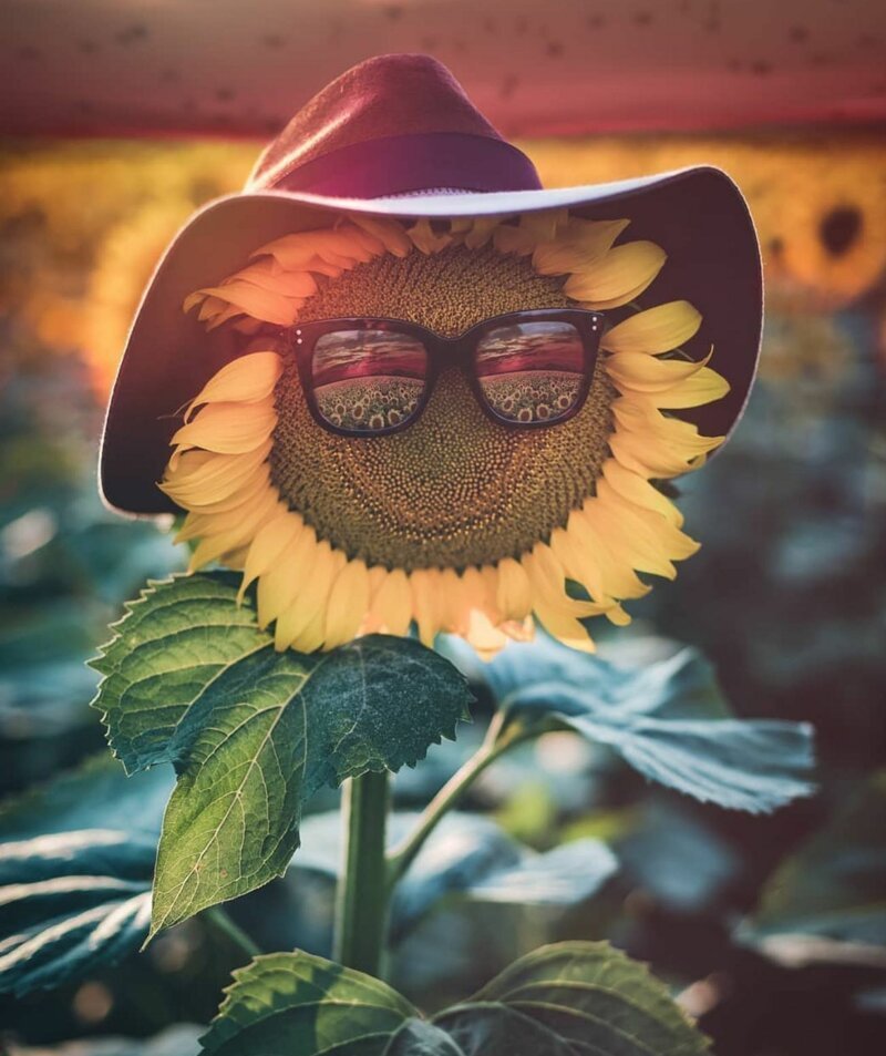 Подсолнух в очках и шляпе